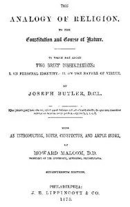 The Analogy of Religion to the Constitution and Course of Nature To which are added two brief dissertations: I. On personal identity. II. On the nature of virtue.